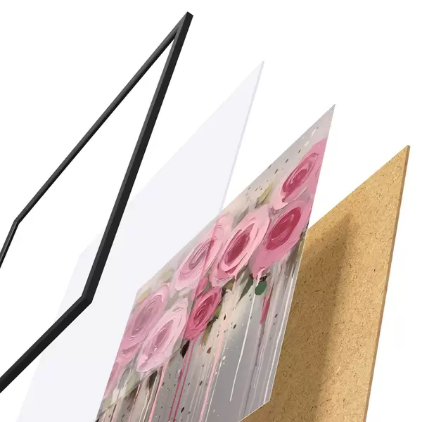 Plakat składa się z ramy, pleksi, wydrukowanego obrazu i podkładu z płyty wiórowej. Plakat można natychmiast zawiesić na ścianie dzięki uchwytom z tyłu.