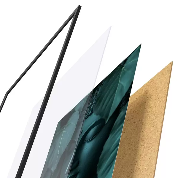 Plakat składa się z ramy, pleksi, wydrukowanego obrazu i podkładu z płyty wiórowej. Plakat można natychmiast zawiesić na ścianie dzięki uchwytom z tyłu.