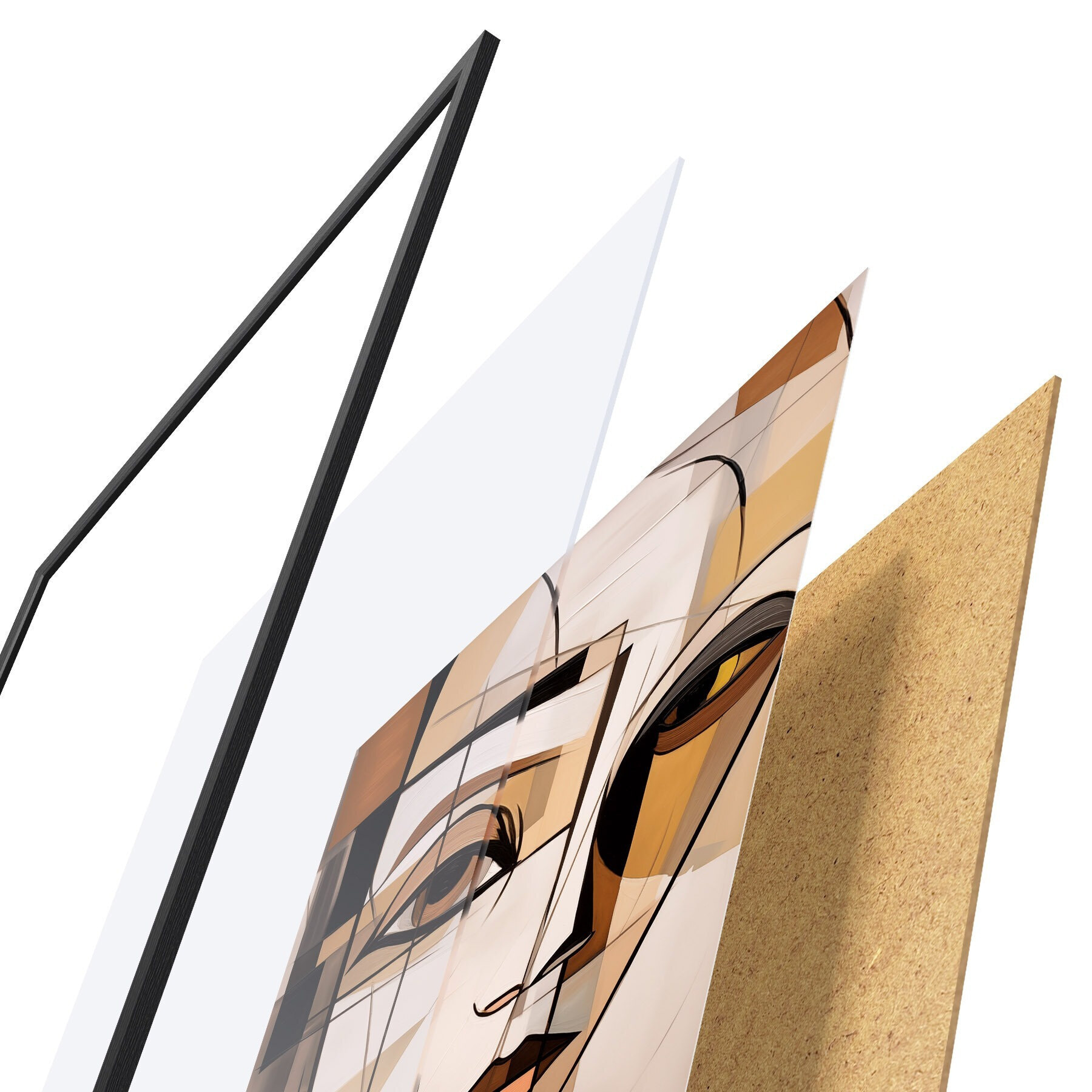 Plakat składa się z ramy, pleksi, wydrukowanego obrazu i podkładu z płyty wiórowej. Plakat można natychmiast zawiesić na ścianie dzięki uchwytom z tyłu.