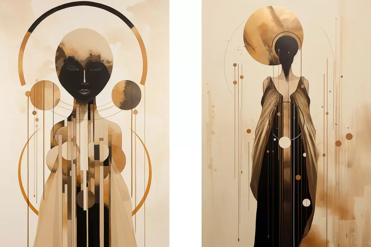Poster Postacie w nowoczesnym stylu abstrakcyjnym z okręgami Nr d00464
