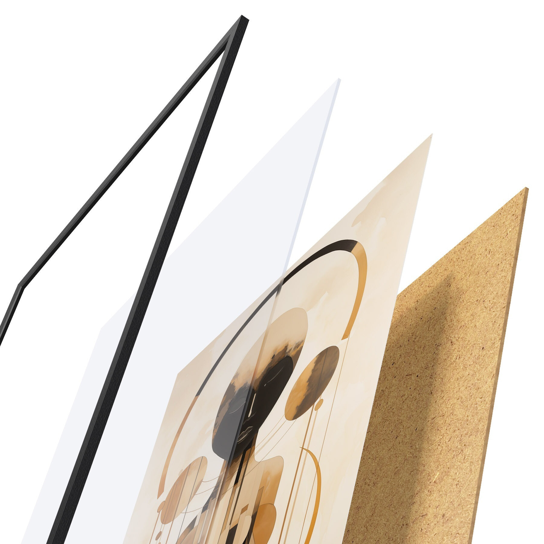 Plakat składa się z ramy, pleksi, wydrukowanego obrazu i podkładu z płyty wiórowej. Plakat można natychmiast zawiesić na ścianie dzięki uchwytom z tyłu.