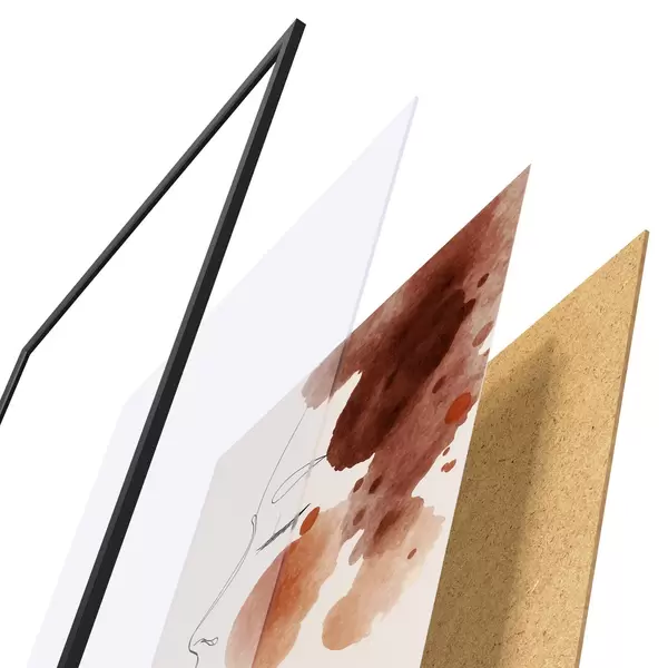 Plakat składa się z ramy, pleksi, wydrukowanego obrazu i podkładu z płyty wiórowej. Plakat można natychmiast zawiesić na ścianie dzięki uchwytom z tyłu.