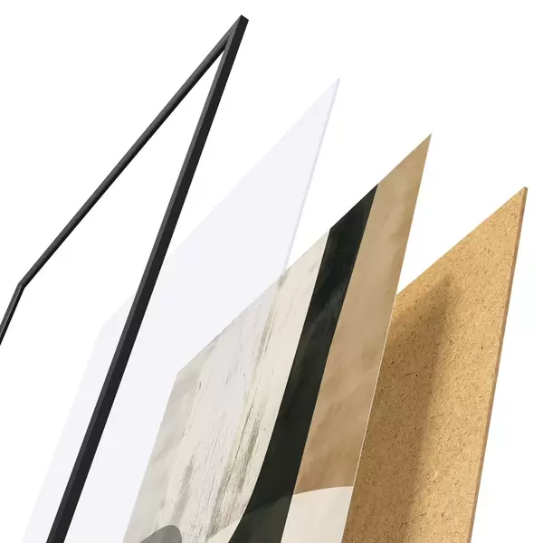 Plakat składa się z ramy, pleksi, wydrukowanego obrazu i podkładu z płyty wiórowej. Plakat można natychmiast zawiesić na ścianie dzięki uchwytom z tyłu.