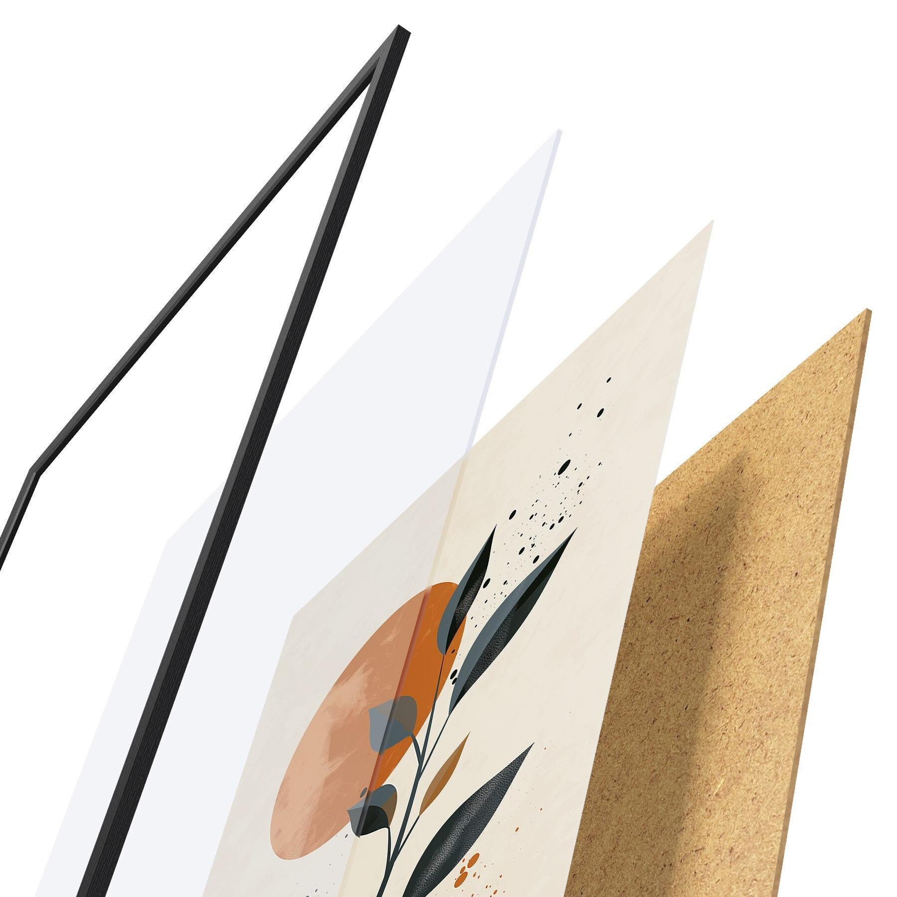 Plakat składa się z ramy, pleksi, wydrukowanego obrazu i podkładu z płyty wiórowej. Plakat można natychmiast zawiesić na ścianie dzięki uchwytom z tyłu.