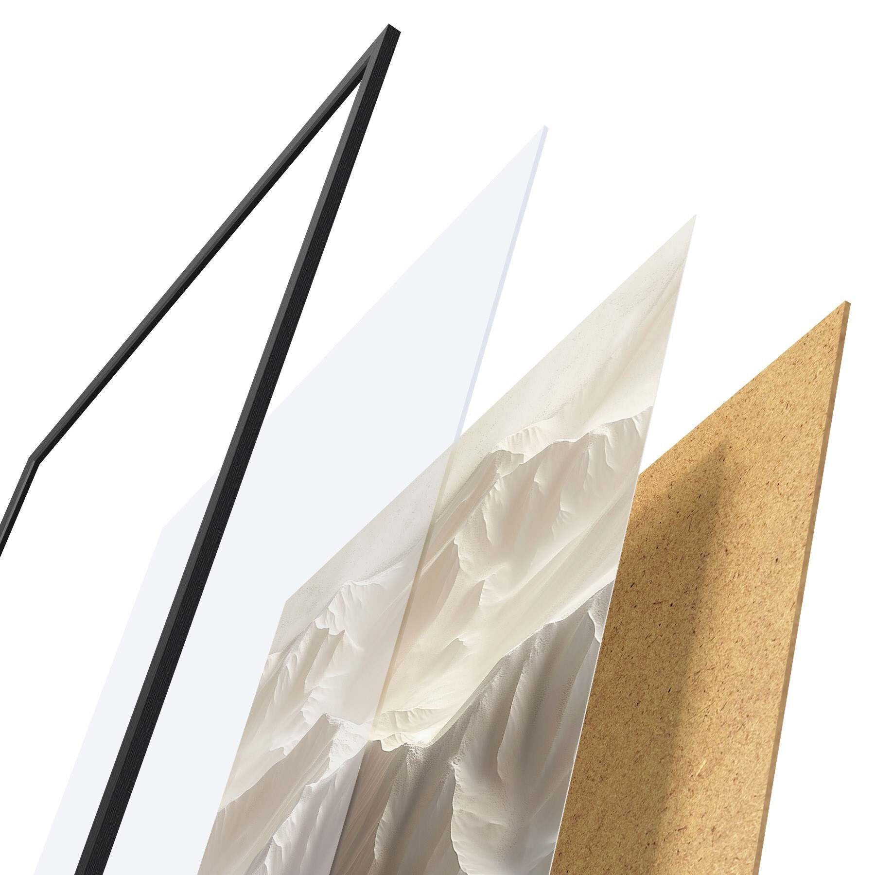 Plakat składa się z ramy, pleksi, wydrukowanego obrazu i podkładu z płyty wiórowej. Plakat można natychmiast zawiesić na ścianie dzięki uchwytom z tyłu.