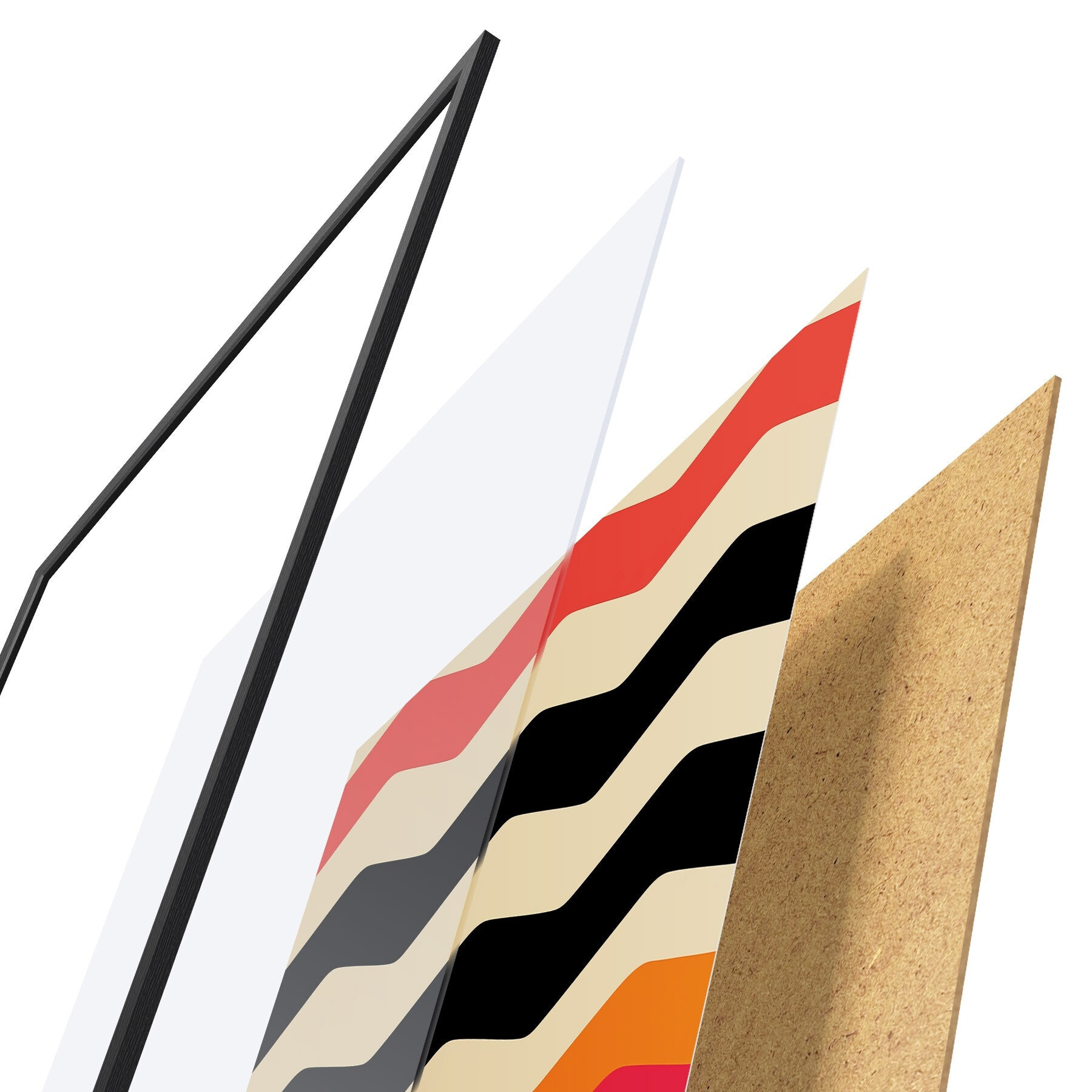 Plakat składa się z ramy, pleksi, wydrukowanego obrazu i podkładu z płyty wiórowej. Plakat można natychmiast zawiesić na ścianie dzięki uchwytom z tyłu.