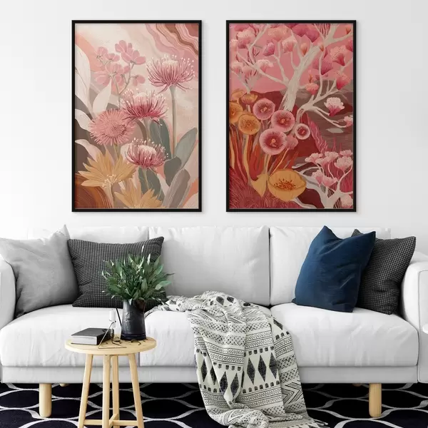 Plakat Kwiaty w stylu boho, szczegółowy rysunek, bordowe kolory d00476