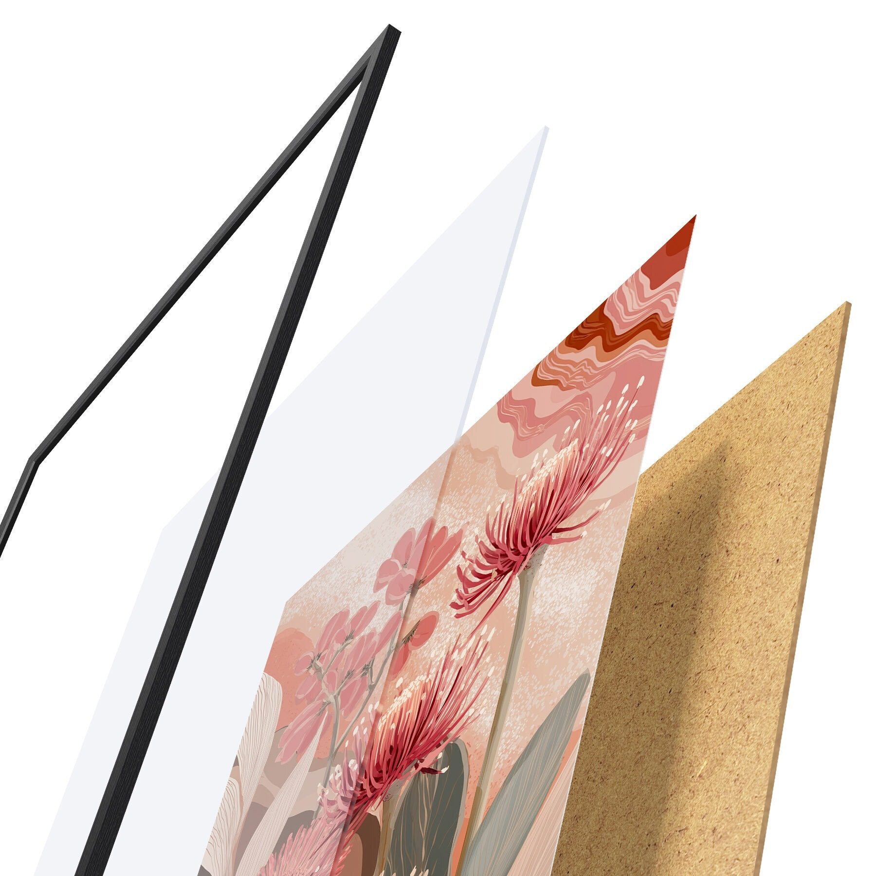 Plakat składa się z ramy, pleksi, wydrukowanego obrazu i podkładu z płyty wiórowej. Plakat można natychmiast zawiesić na ścianie dzięki uchwytom z tyłu.