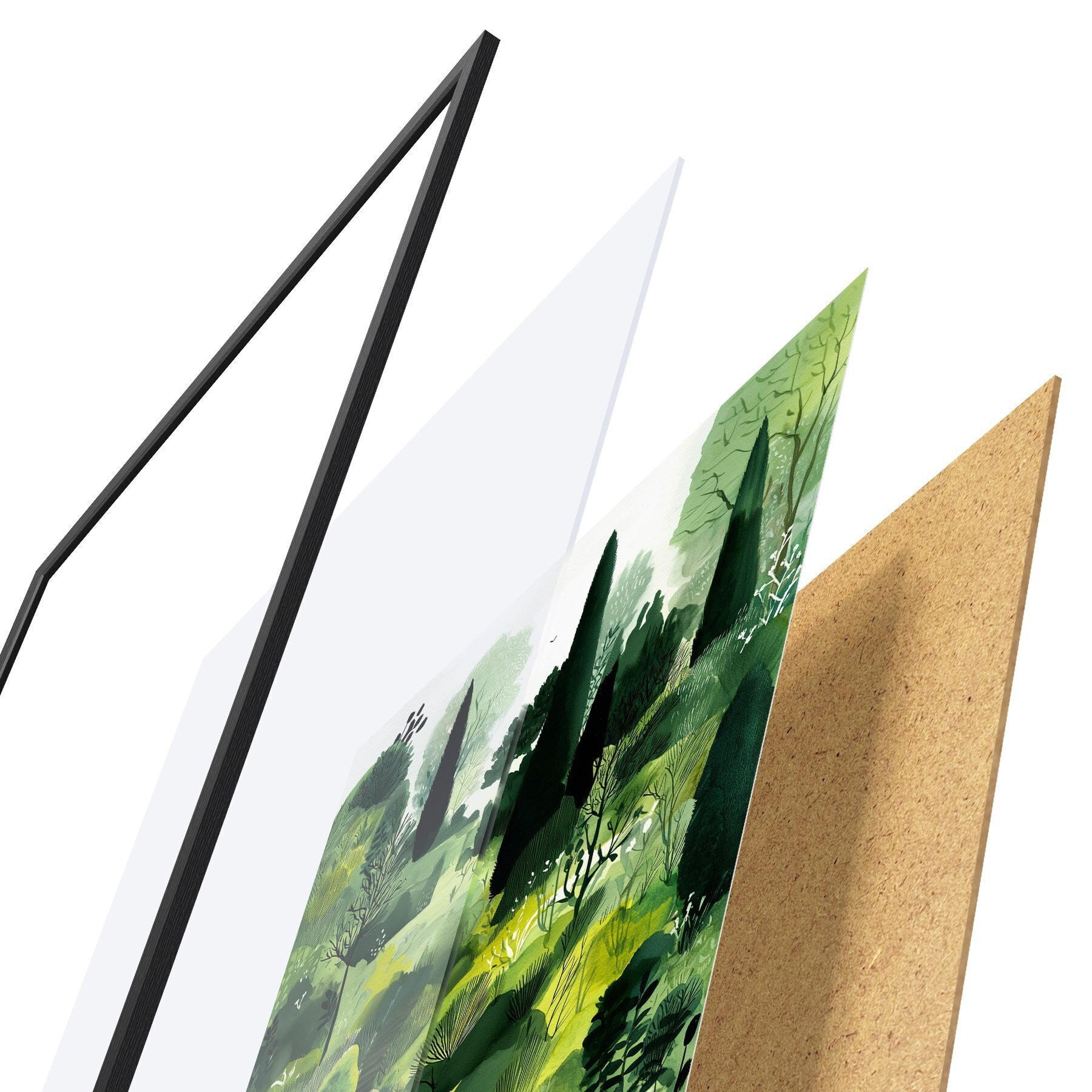Plakat składa się z ramy, pleksi, wydrukowanego obrazu i podkładu z płyty wiórowej. Plakat można natychmiast zawiesić na ścianie dzięki uchwytom z tyłu.