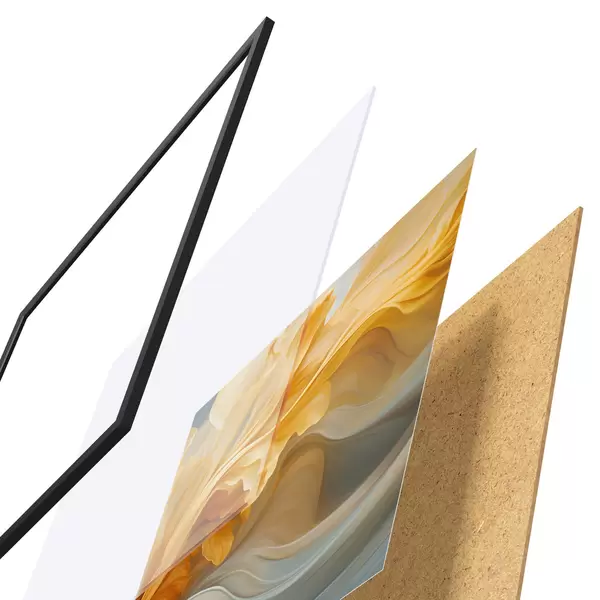 Plakat składa się z ramy, pleksi, wydrukowanego obrazu i podkładu z płyty wiórowej. Plakat można natychmiast zawiesić na ścianie dzięki uchwytom z tyłu.
