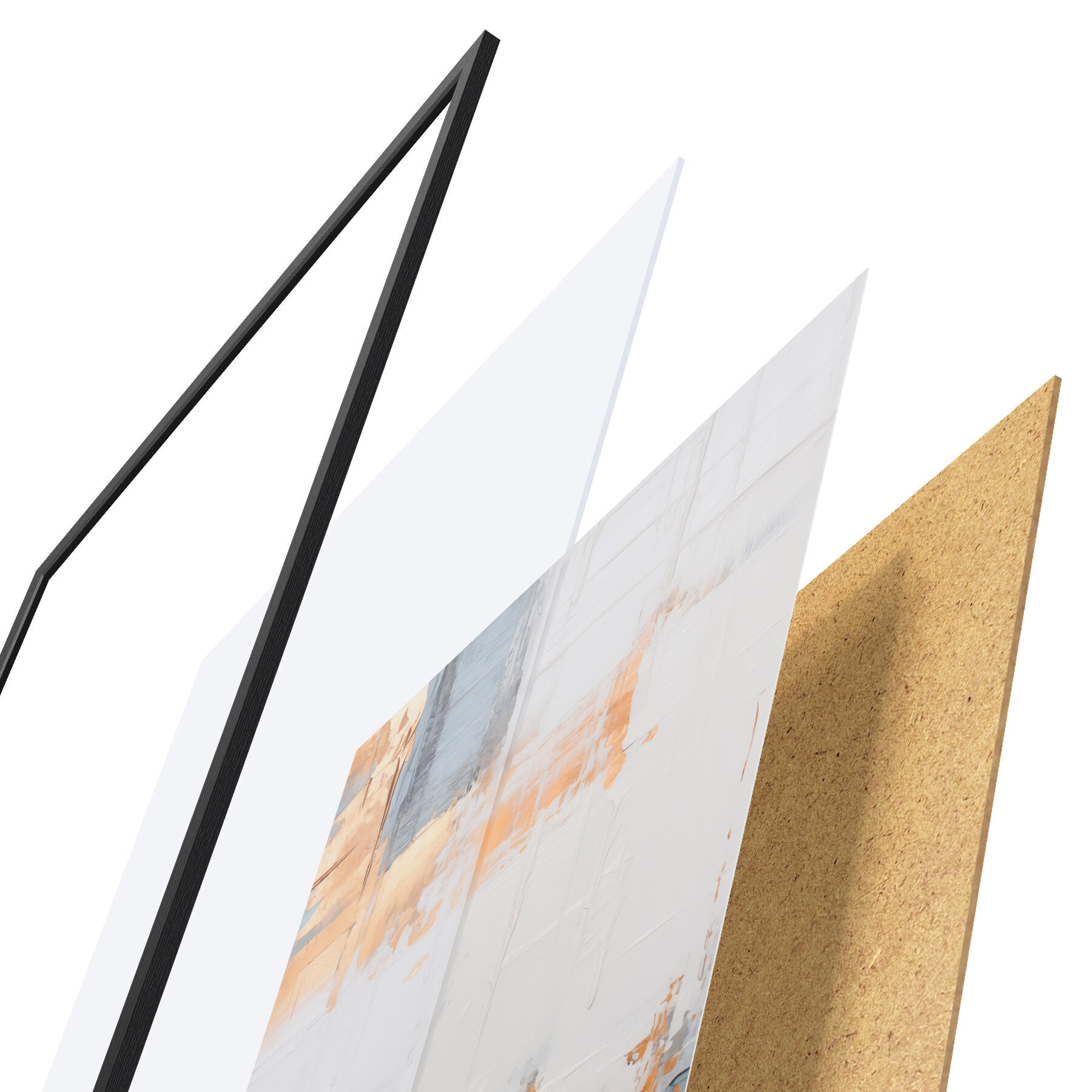 Plakat składa się z ramy, pleksi, wydrukowanego obrazu i podkładu z płyty wiórowej. Plakat można natychmiast zawiesić na ścianie dzięki uchwytom z tyłu.