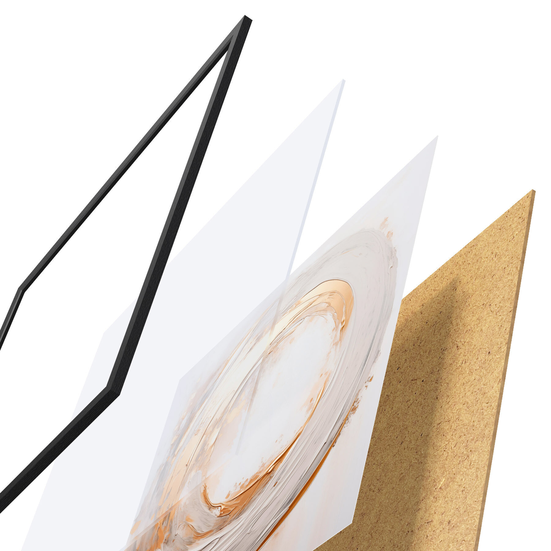 Plakat składa się z ramy, pleksi, wydrukowanego obrazu i podkładu z płyty wiórowej. Plakat można natychmiast zawiesić na ścianie dzięki uchwytom z tyłu.