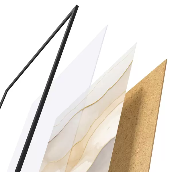 Plakat składa się z ramy, pleksi, wydrukowanego obrazu i podkładu z płyty wiórowej. Plakat można natychmiast zawiesić na ścianie dzięki uchwytom z tyłu.