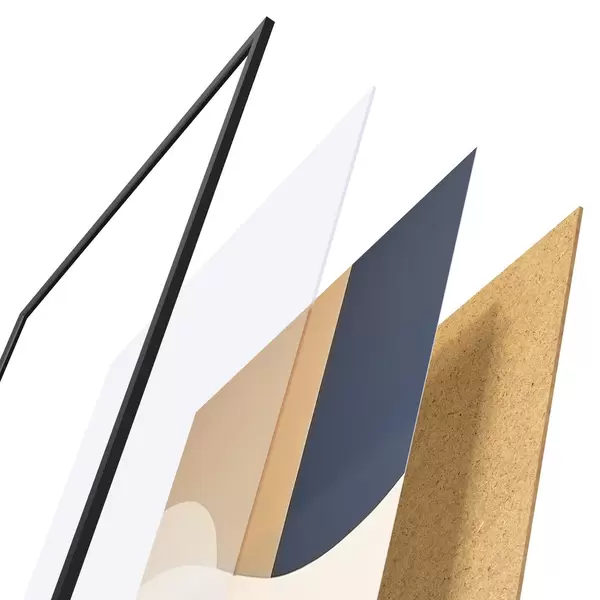 Plakat składa się z ramy, pleksi, wydrukowanego obrazu i podkładu z płyty wiórowej. Plakat można natychmiast zawiesić na ścianie dzięki uchwytom z tyłu.