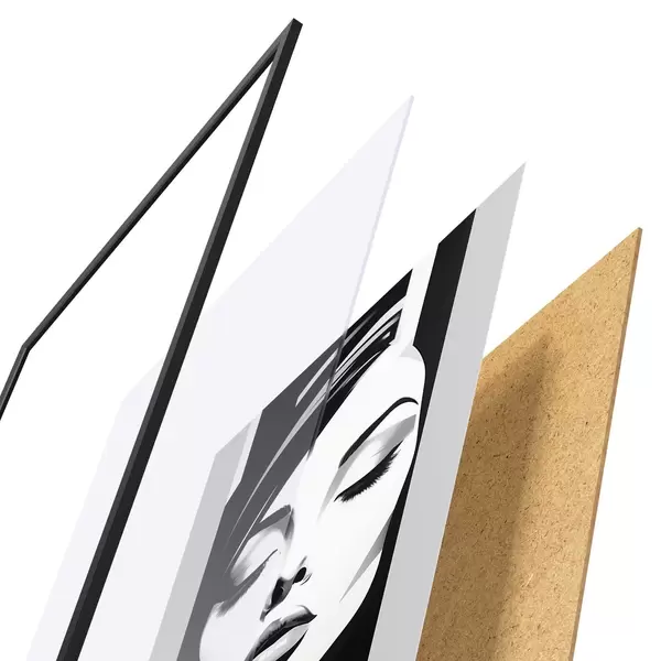Plakat składa się z ramy, pleksi, wydrukowanego obrazu i podkładu z płyty wiórowej. Plakat można natychmiast zawiesić na ścianie dzięki uchwytom z tyłu.