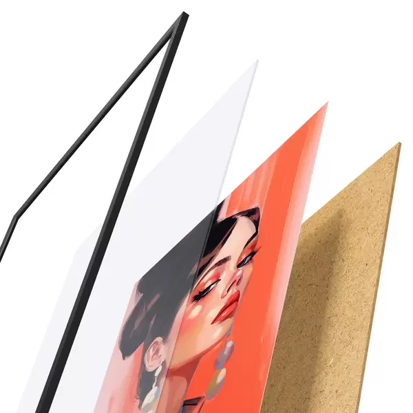 Plakat składa się z ramy, pleksi, wydrukowanego obrazu i podkładu z płyty wiórowej. Plakat można natychmiast zawiesić na ścianie dzięki uchwytom z tyłu.