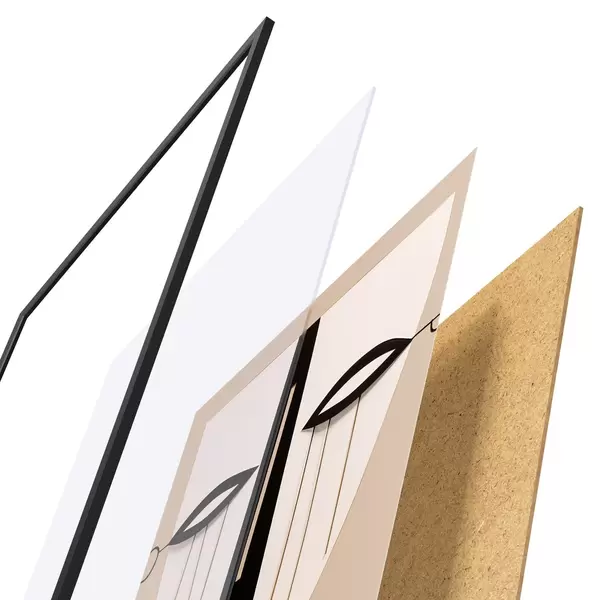 Plakat składa się z ramy, pleksi, wydrukowanego obrazu i podkładu z płyty wiórowej. Plakat można natychmiast zawiesić na ścianie dzięki uchwytom z tyłu.