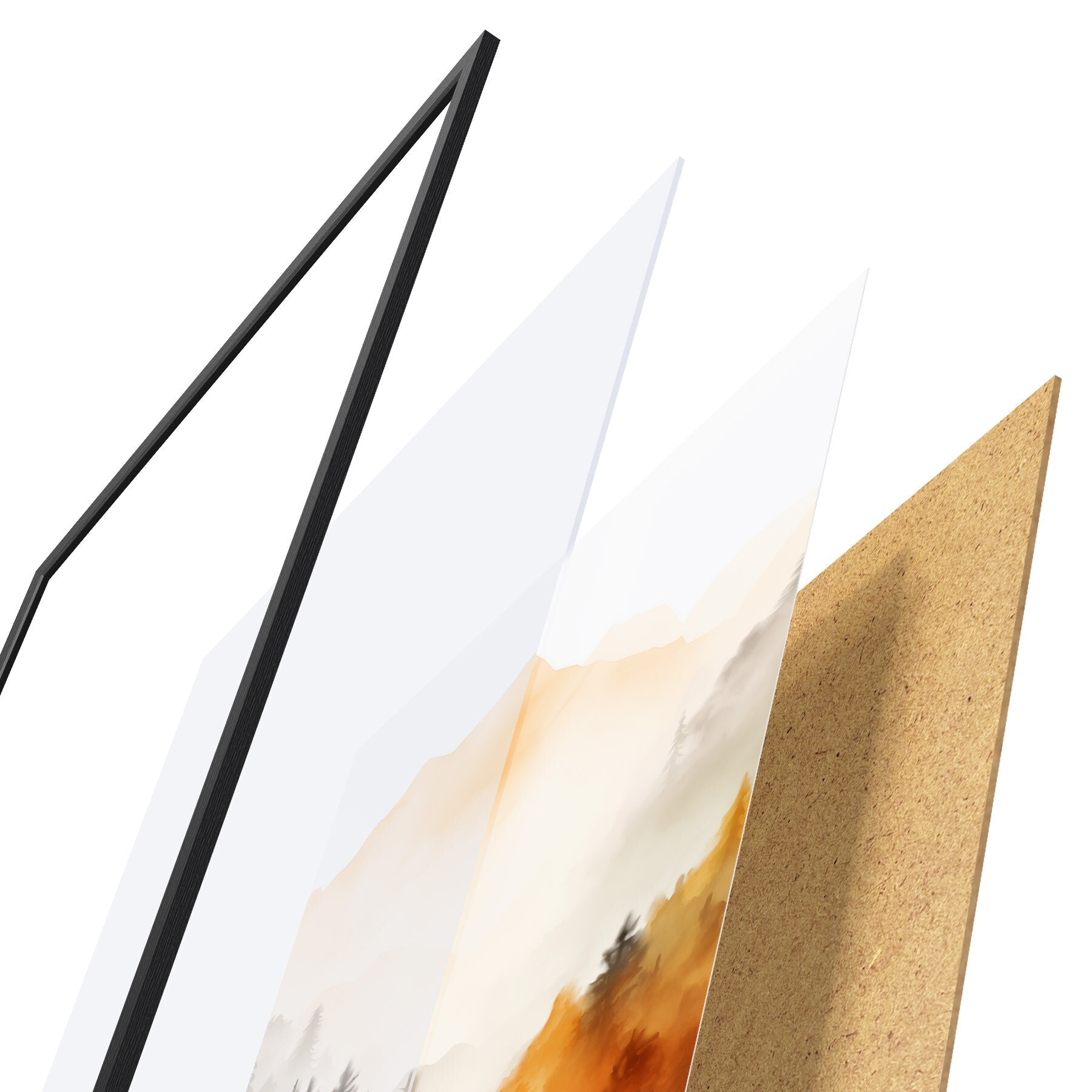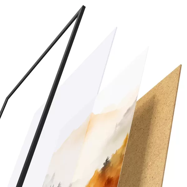 Plakat składa się z ramy, pleksi, wydrukowanego obrazu i podkładu z płyty wiórowej. Plakat można natychmiast zawiesić na ścianie dzięki uchwytom z tyłu.