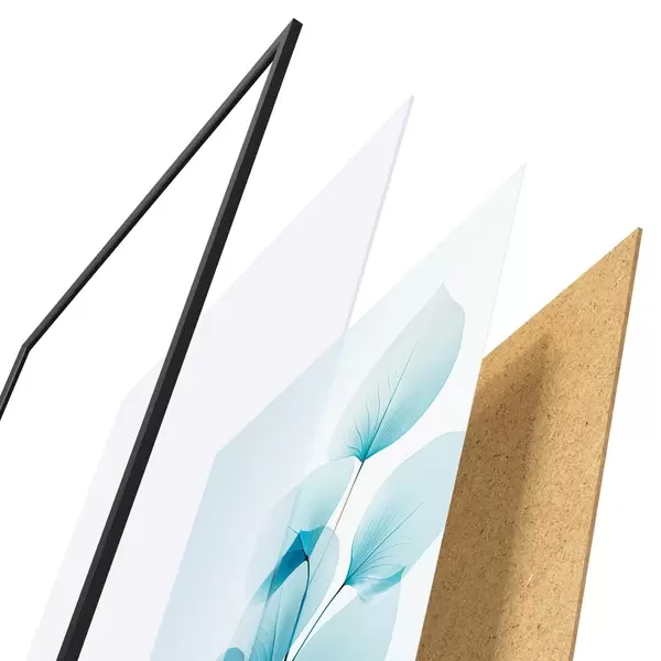 Plakat składa się z ramy, pleksi, wydrukowanego obrazu i podkładu z płyty wiórowej. Plakat można natychmiast zawiesić na ścianie dzięki uchwytom z tyłu.