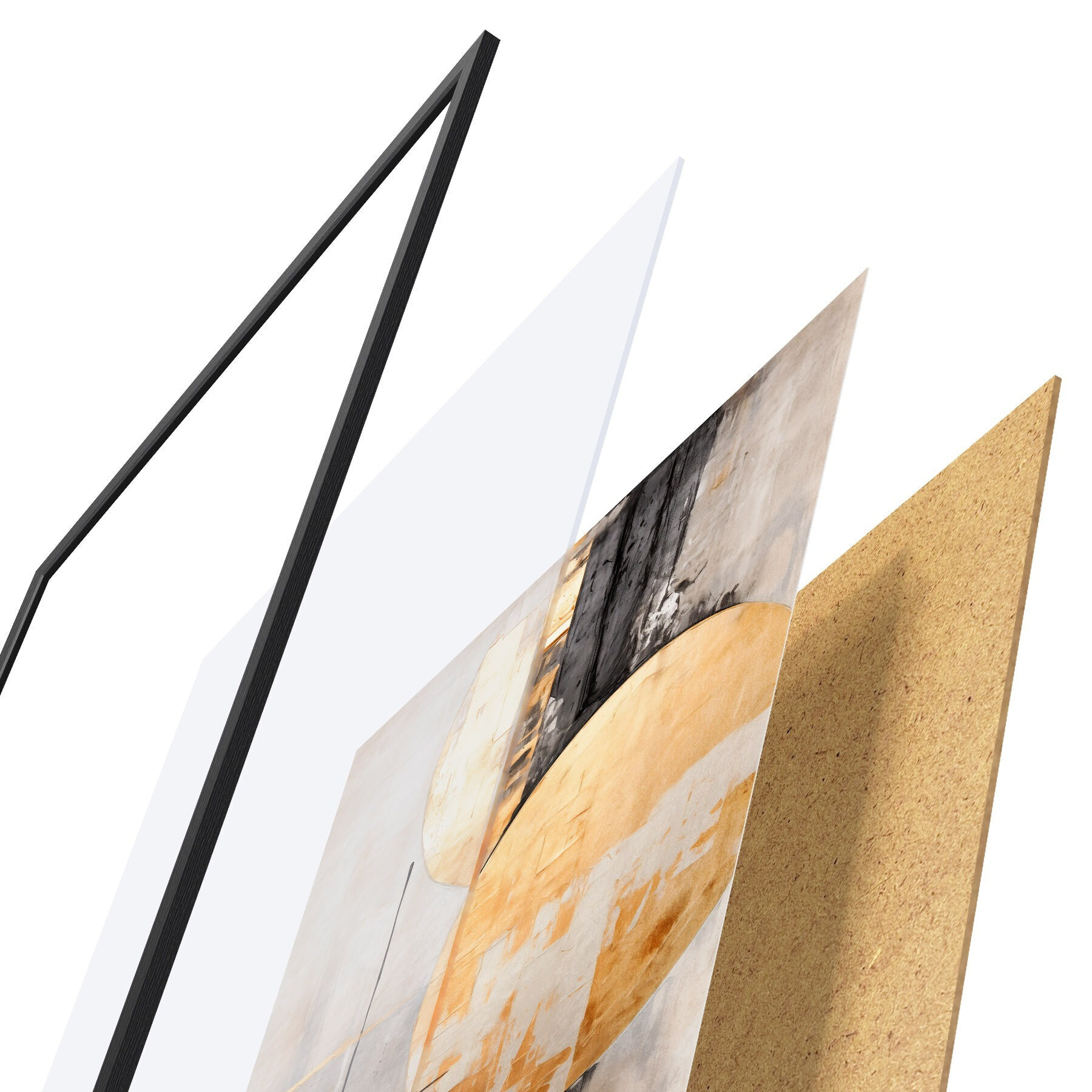 Plakat składa się z ramy, pleksi, wydrukowanego obrazu i podkładu z płyty wiórowej. Plakat można natychmiast zawiesić na ścianie dzięki uchwytom z tyłu.