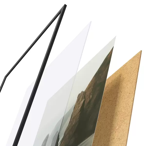 Plakat składa się z ramy, pleksi, wydrukowanego obrazu i podkładu z płyty wiórowej. Plakat można natychmiast zawiesić na ścianie dzięki uchwytom z tyłu.