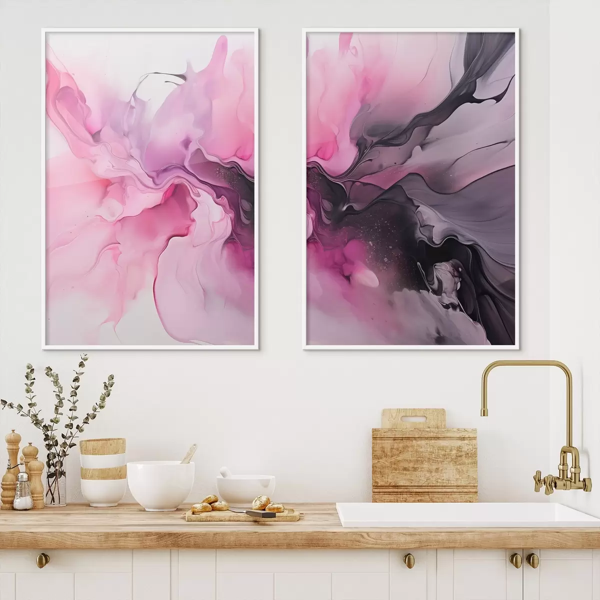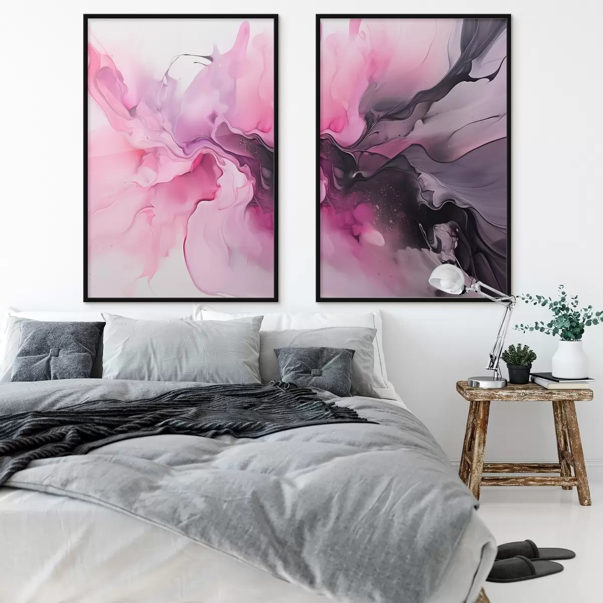 Plakat Abstrakcyjne wiry różu, fioletu i czerni łączą się ze sobą w płynnej, organicznej kompozycji, tworząc poczucie ruchu d00532
