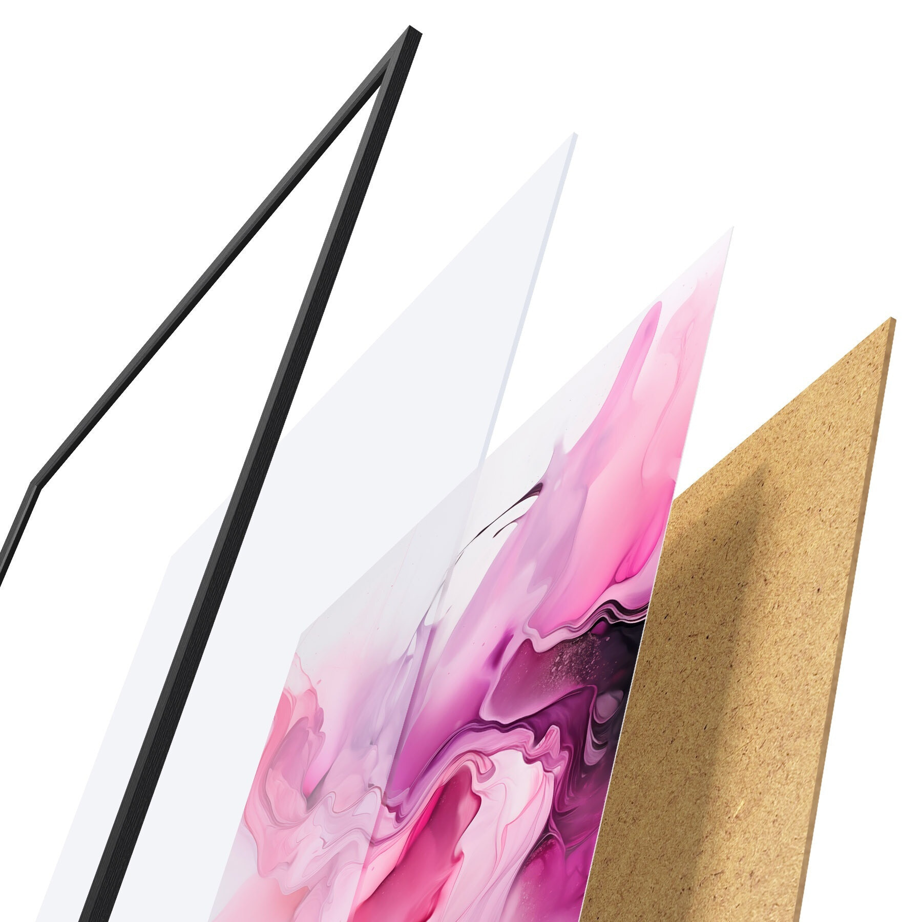 Plakat składa się z ramy, pleksi, wydrukowanego obrazu i podkładu z płyty wiórowej. Plakat można natychmiast zawiesić na ścianie dzięki uchwytom z tyłu.