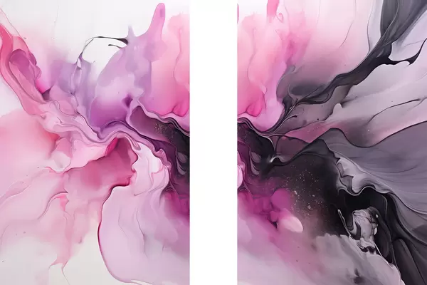 Plakat Abstrakcyjne wiry różu, fioletu i czerni łączą się ze sobą w płynnej, organicznej kompozycji, tworząc poczucie ruchu d00532