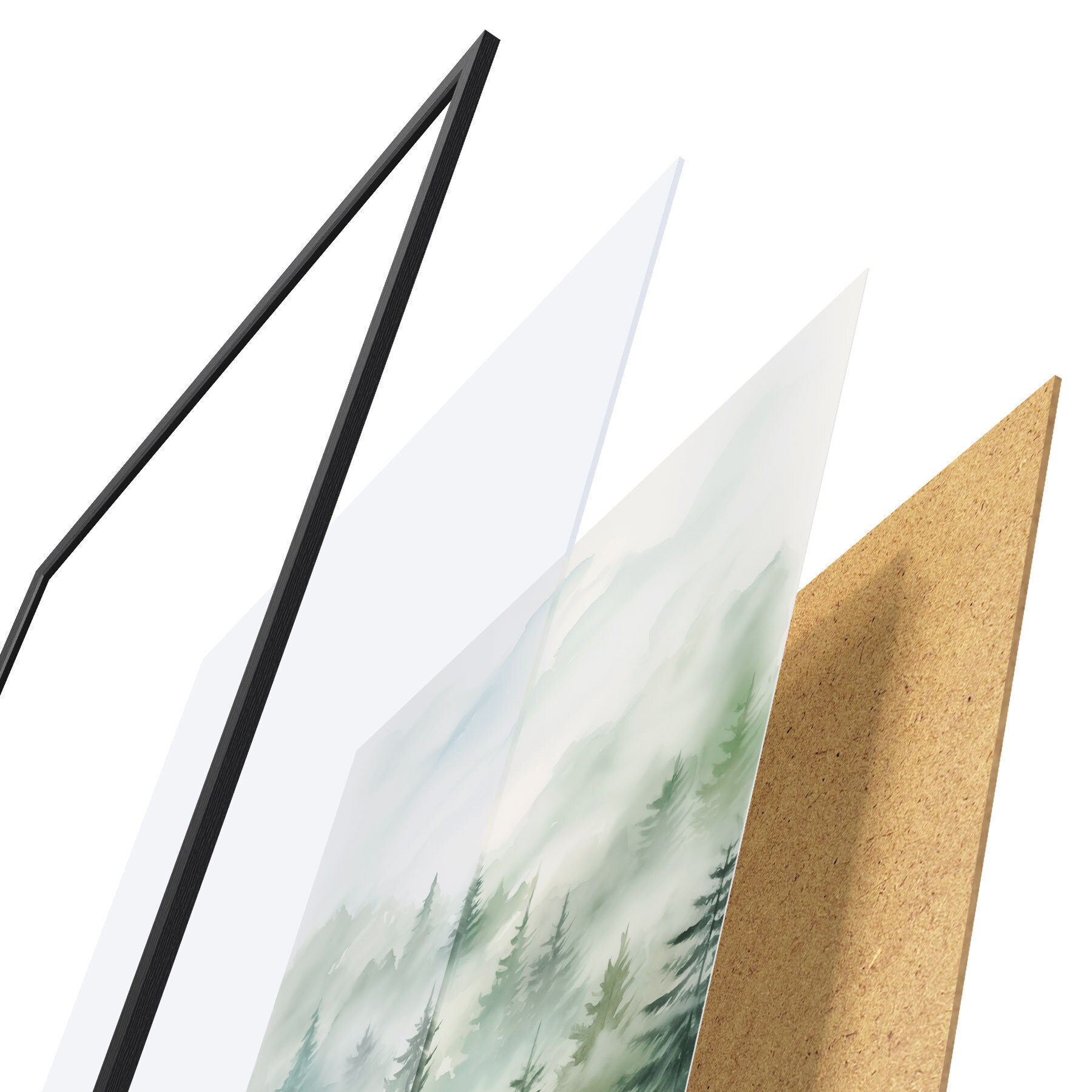 Plakat składa się z ramy, pleksi, wydrukowanego obrazu i podkładu z płyty wiórowej. Plakat można natychmiast zawiesić na ścianie dzięki uchwytom z tyłu.