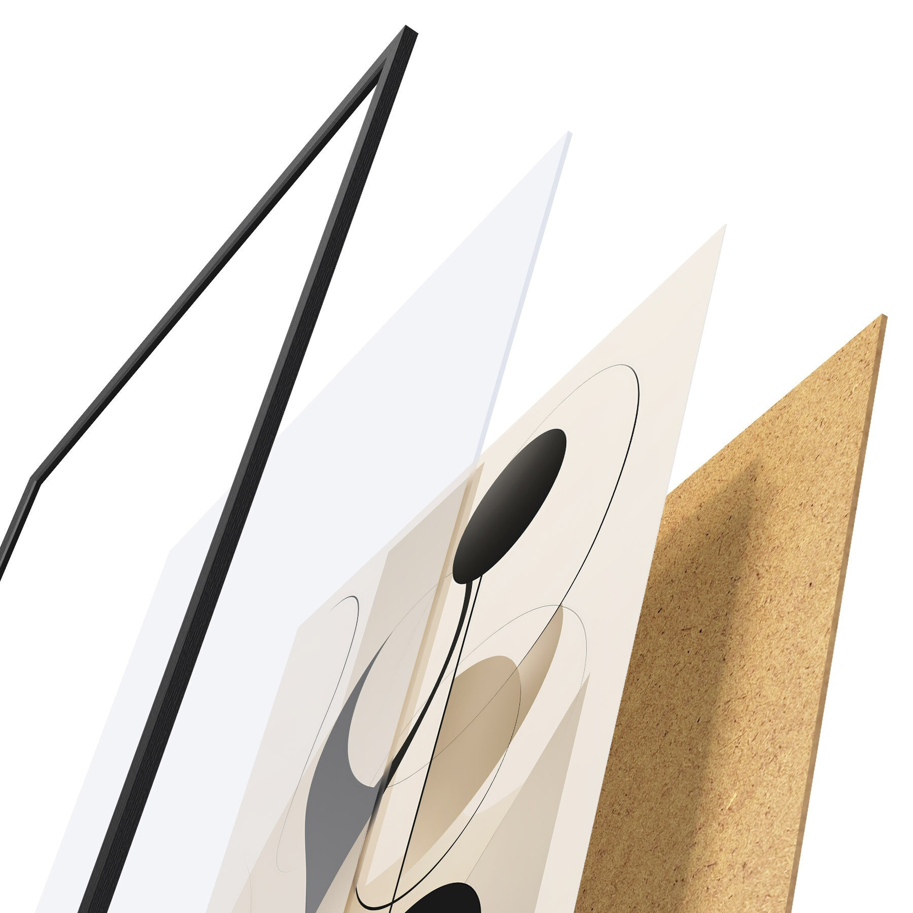Plakat składa się z ramy, pleksi, wydrukowanego obrazu i podkładu z płyty wiórowej. Plakat można natychmiast zawiesić na ścianie dzięki uchwytom z tyłu.