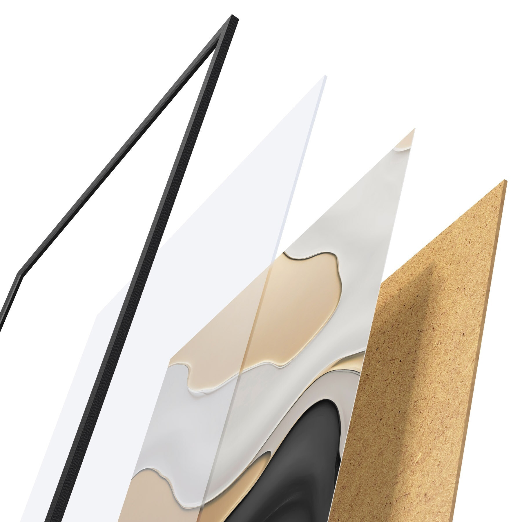 Plakat składa się z ramy, pleksi, wydrukowanego obrazu i podkładu z płyty wiórowej. Plakat można natychmiast zawiesić na ścianie dzięki uchwytom z tyłu.