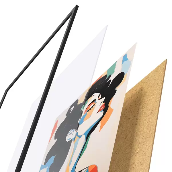 Plakat składa się z ramy, pleksi, wydrukowanego obrazu i podkładu z płyty wiórowej. Plakat można natychmiast zawiesić na ścianie dzięki uchwytom z tyłu.
