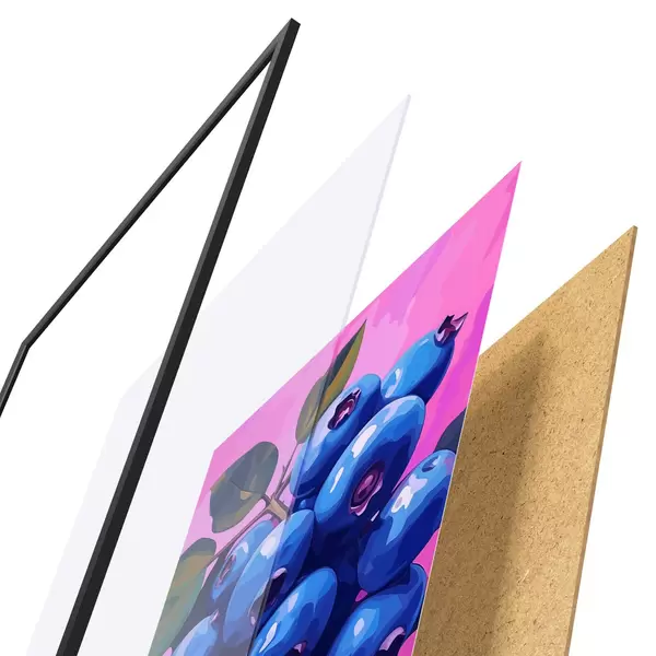 Plakat składa się z ramy, pleksi, wydrukowanego obrazu i podkładu z płyty wiórowej. Plakat można natychmiast zawiesić na ścianie dzięki uchwytom z tyłu.