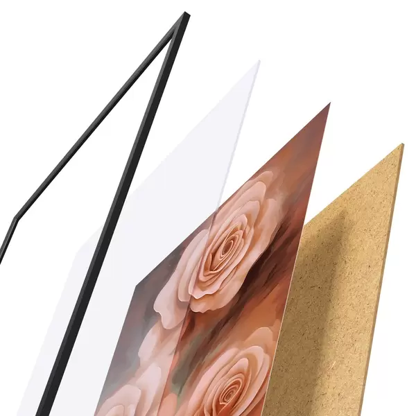 Plakat składa się z ramy, pleksi, wydrukowanego obrazu i podkładu z płyty wiórowej. Plakat można natychmiast zawiesić na ścianie dzięki uchwytom z tyłu.
