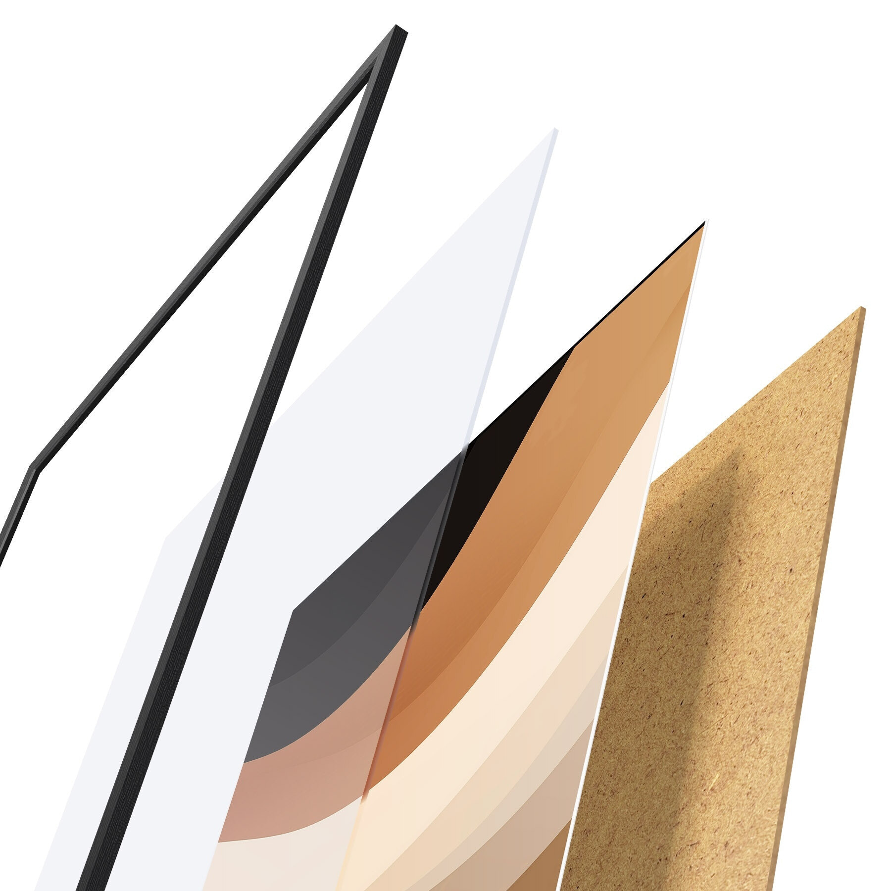 Plakat składa się z ramy, pleksi, wydrukowanego obrazu i podkładu z płyty wiórowej. Plakat można natychmiast zawiesić na ścianie dzięki uchwytom z tyłu.