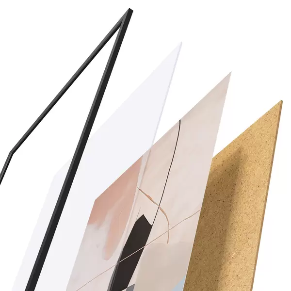 Plakat składa się z ramy, pleksi, wydrukowanego obrazu i podkładu z płyty wiórowej. Plakat można natychmiast zawiesić na ścianie dzięki uchwytom z tyłu.