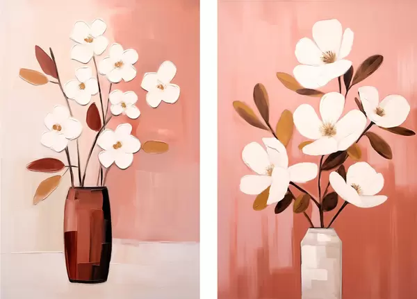 Poster Kompozycja z kontrastującymi wazonami i teksturowanymi białymi kwiatami Nr d00575