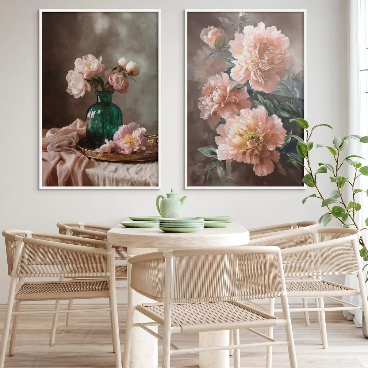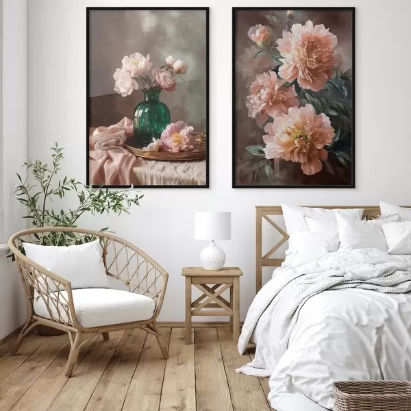 Poster Kompozycja z różowymi piwoniami w wazonie i na płótnie Nr d00578