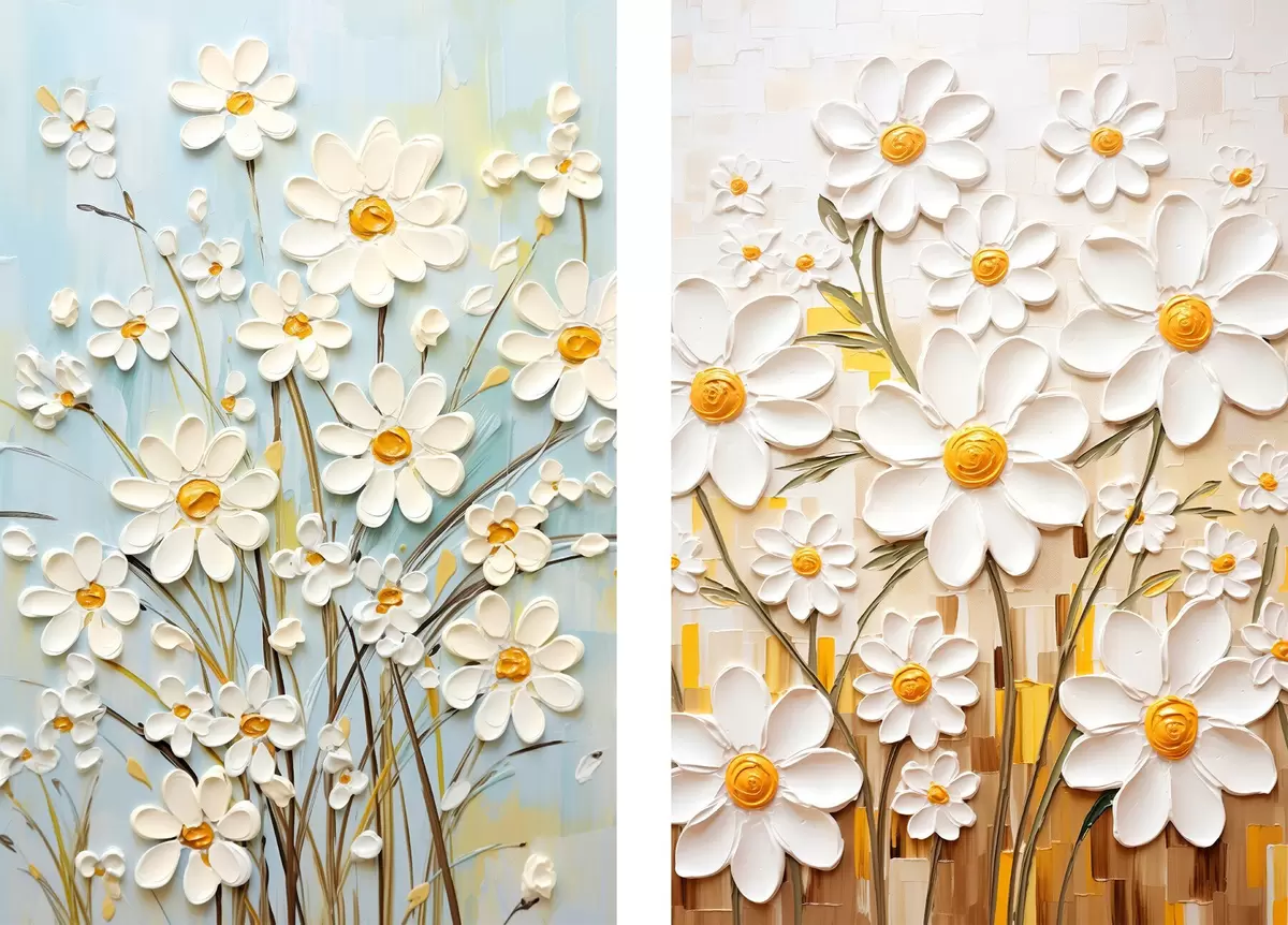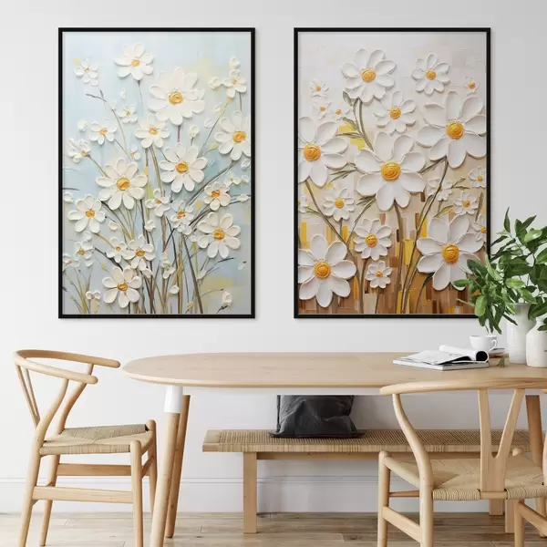 Poster Słoneczne kwiaty: artystyczny duet z wolumetrycznymi stokrotkami i żółtymi akcentami Nr d00580