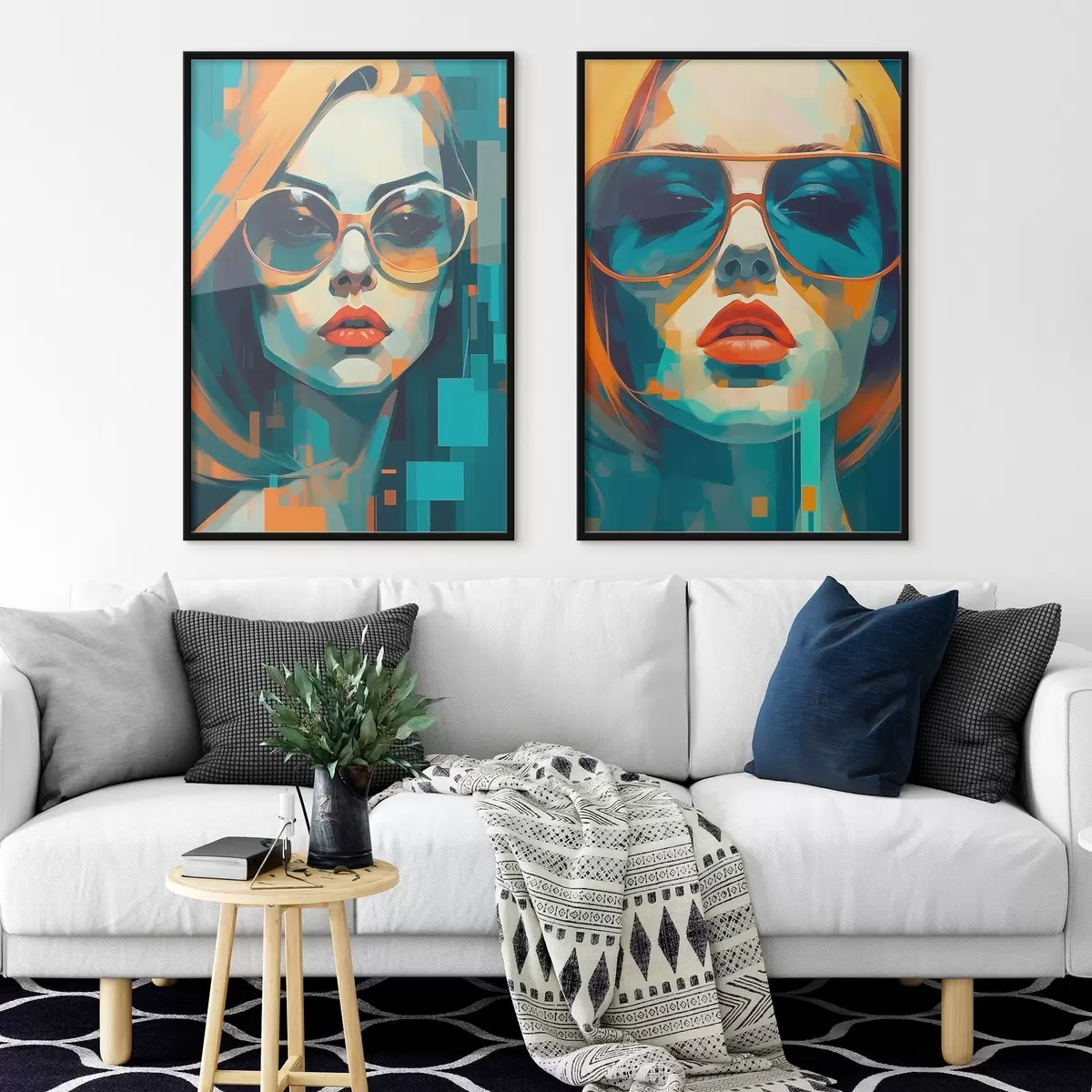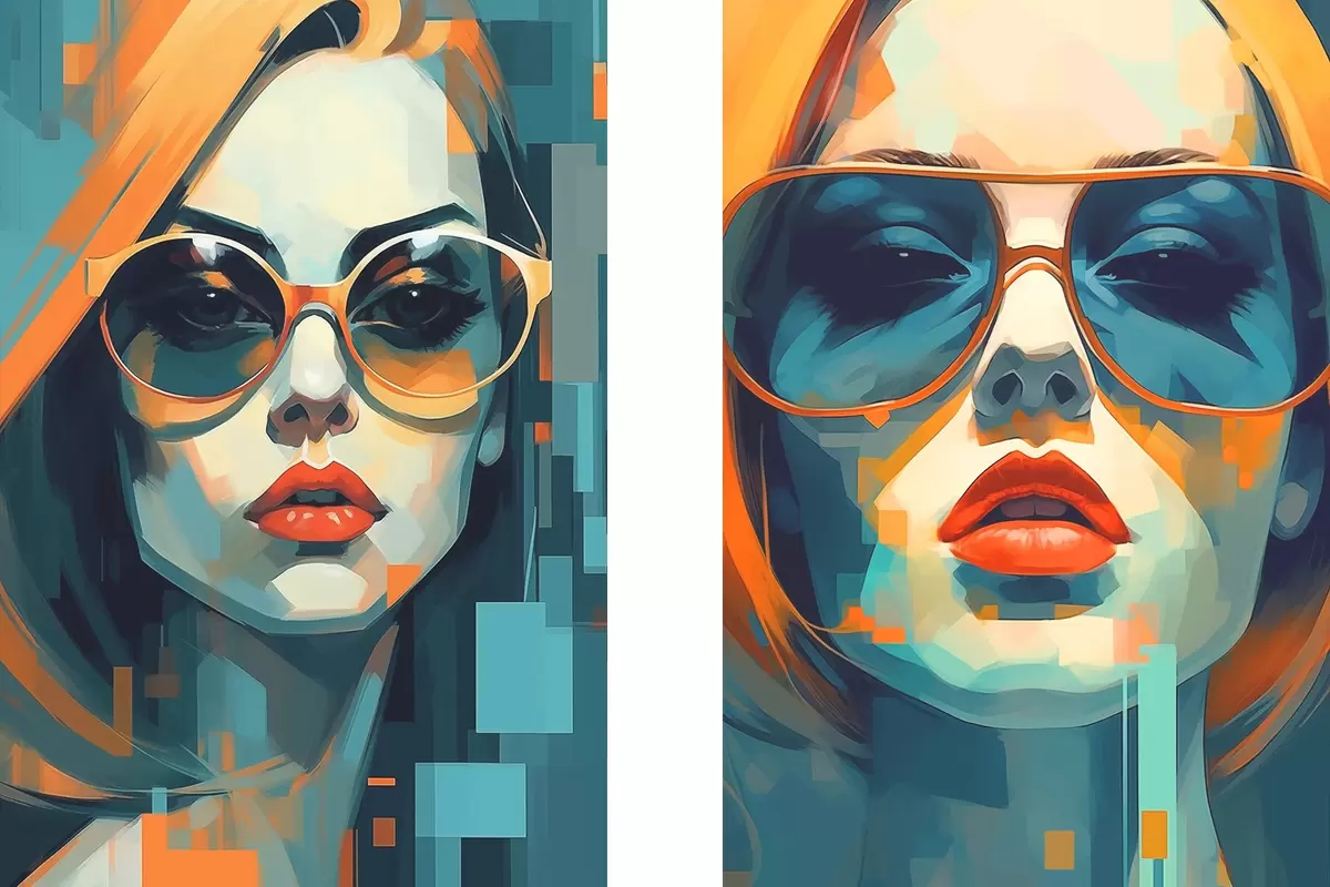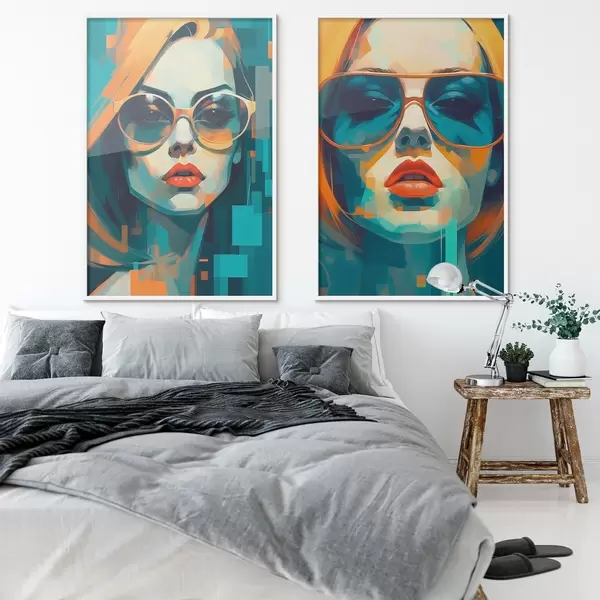 Plakat Kobiece portrety w okularach w stylu cyfrowej abstrakcji d00587