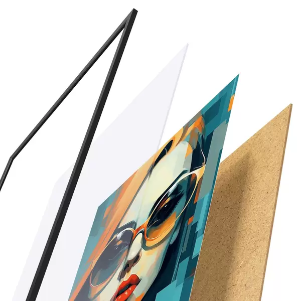 Plakat składa się z ramy, pleksi, wydrukowanego obrazu i podkładu z płyty wiórowej. Plakat można natychmiast zawiesić na ścianie dzięki uchwytom z tyłu.