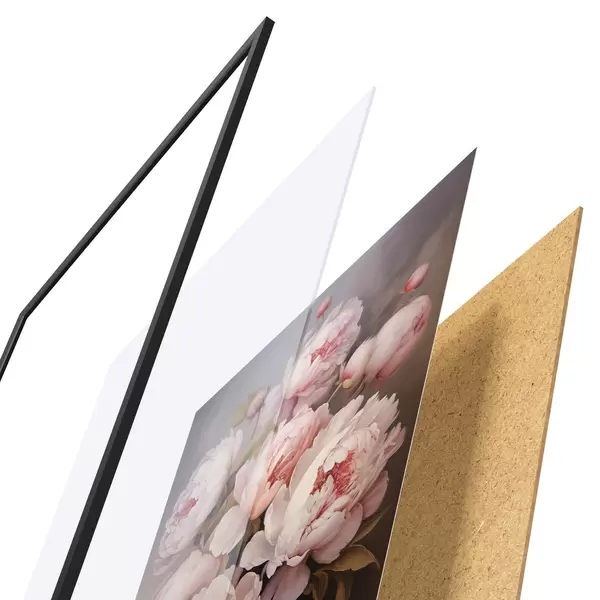 Plakat składa się z ramy, pleksi, wydrukowanego obrazu i podkładu z płyty wiórowej. Plakat można natychmiast zawiesić na ścianie dzięki uchwytom z tyłu.