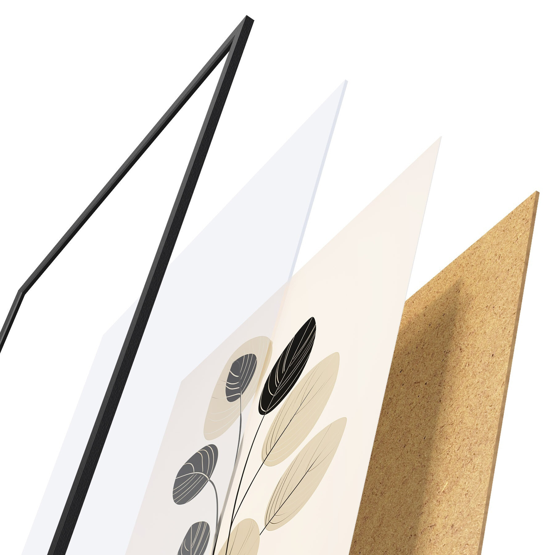 Plakat składa się z ramy, pleksi, wydrukowanego obrazu i podkładu z płyty wiórowej. Plakat można natychmiast zawiesić na ścianie dzięki uchwytom z tyłu.