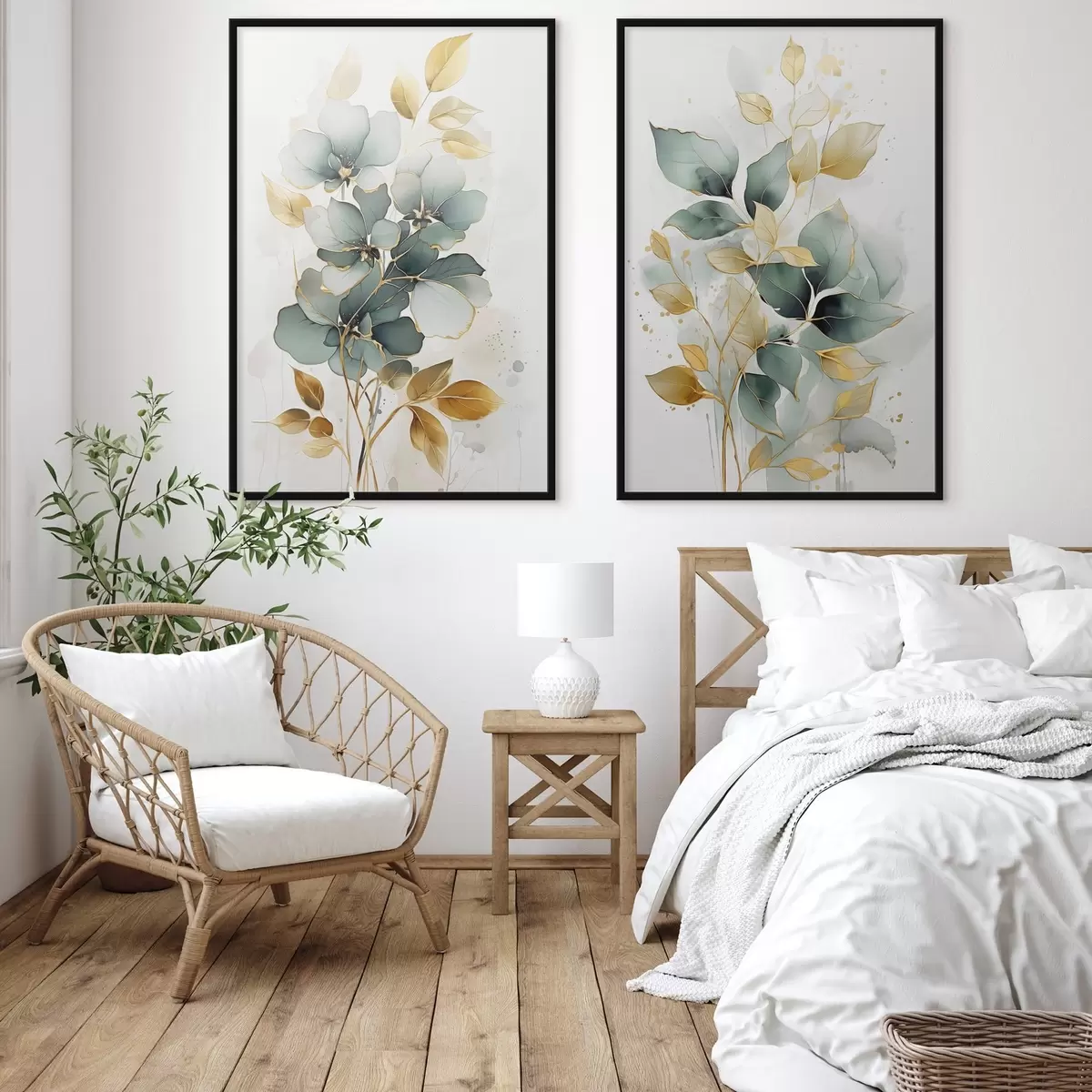 Plakat Abstrakcyjne gałęzie z liśćmi d00610