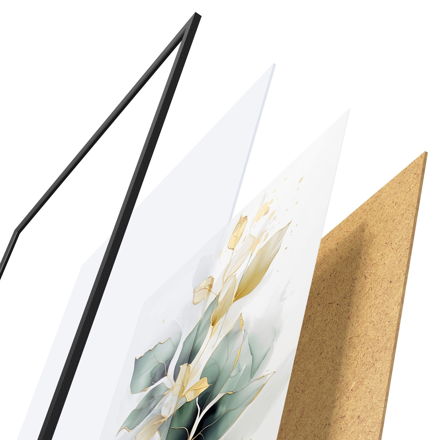 Plakat składa się z ramy, pleksi, wydrukowanego obrazu i podkładu z płyty wiórowej. Plakat można natychmiast zawiesić na ścianie dzięki uchwytom z tyłu.