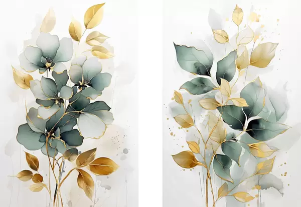 Plakat Abstrakcyjne gałęzie z liśćmi d00610