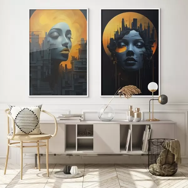 Plakat Portret dziewczyny na abstrakcyjnym tle miasta d00618