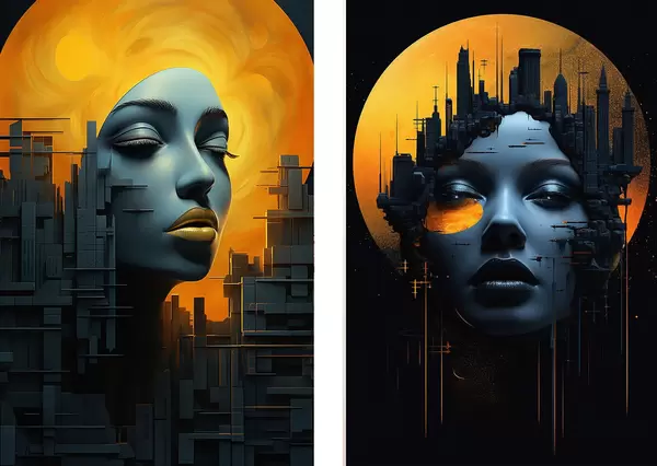 Plakat Portret dziewczyny na abstrakcyjnym tle miasta d00618