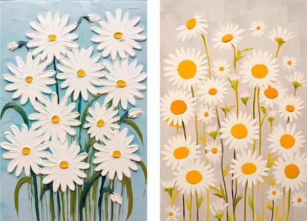Poster Wiosenna świeżość: dyptyk z obszernymi stokrotkami w stylu impasto Nr d00633