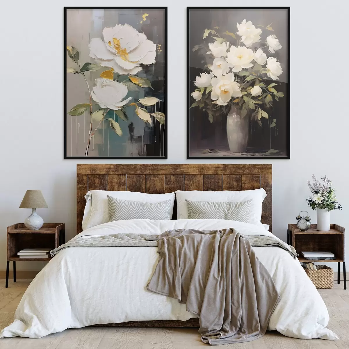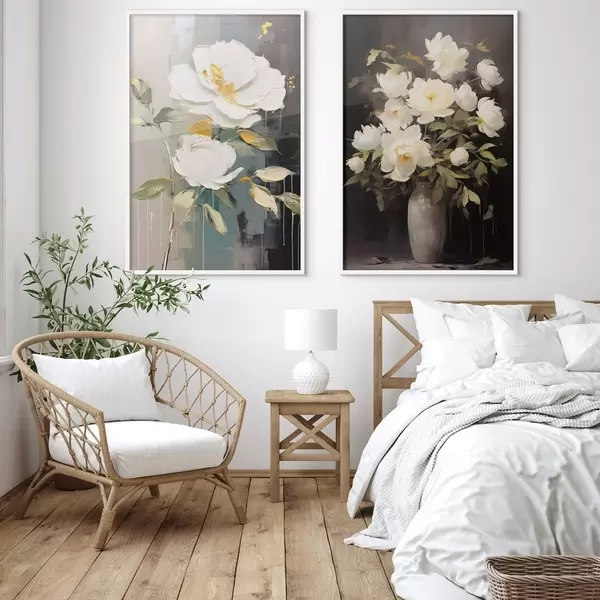 Plakat Białe piwonie na ciemnym tle: kompozycja dekoracyjna d00634